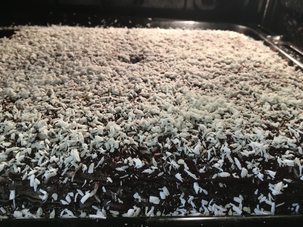 Dryss så masse kokos over kaka.